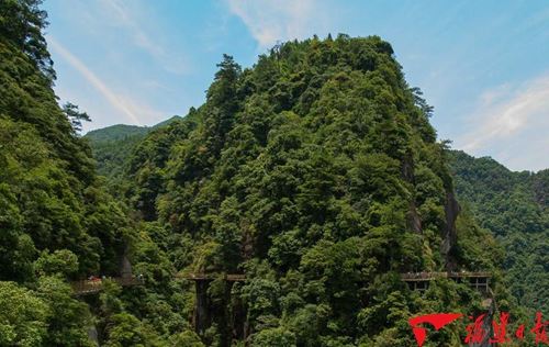 乘7168米长的索道,过村庄、穿峡谷、越竹海;站在外挑悬空52米的玻璃观景台上,俯看脚下瀑布;上石牛山峰顶,在雾气氤氲中领略圣境……