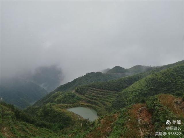 雨云低垂,丝露纷飞。让原本雾霭缭绕的群山更加的梦幻、漂浮、神秘。这座历经数千年沧桑岁月的高山,在追求反哺归真、原始笃定中,它以智慧的积淀,思想的淡定,凝聚成神圣的气场,缭绕笼罩在这方纯净的天空,弥漫着土壤与岩石的坚强。让人不由得心生敬仰和虔诚。被誉为新化的珠穆朗玛,可谓为赫赫煌煌,正如它一千三多米海拔。裸露的石头,葳蕤的灌木,圆圆的池塘,峻拔山丘,气势宏伟,古拙典雅,昭示着它承载着千年的涅槃精神与草木繁衍生生的存在。