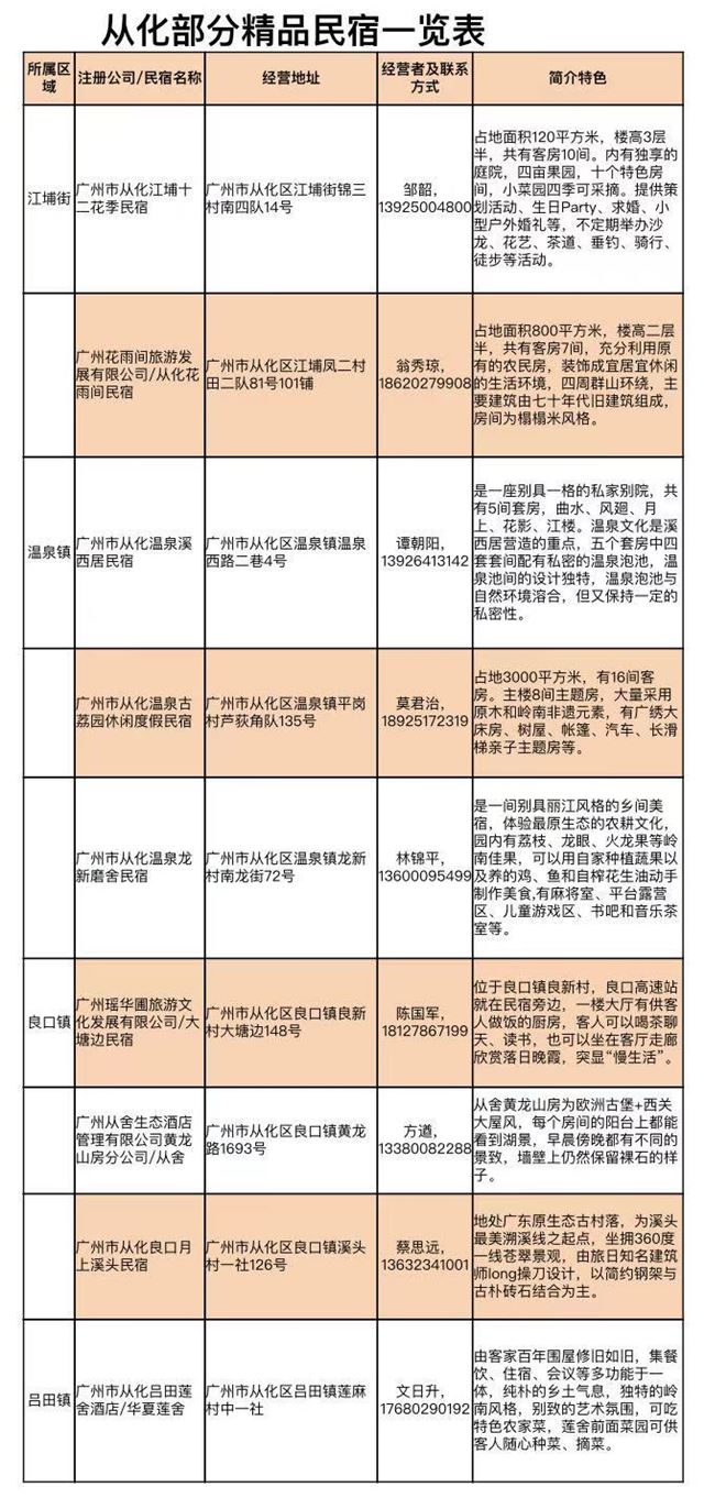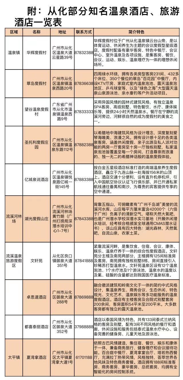 附:从化部分知名温泉酒店、旅游酒店一览表