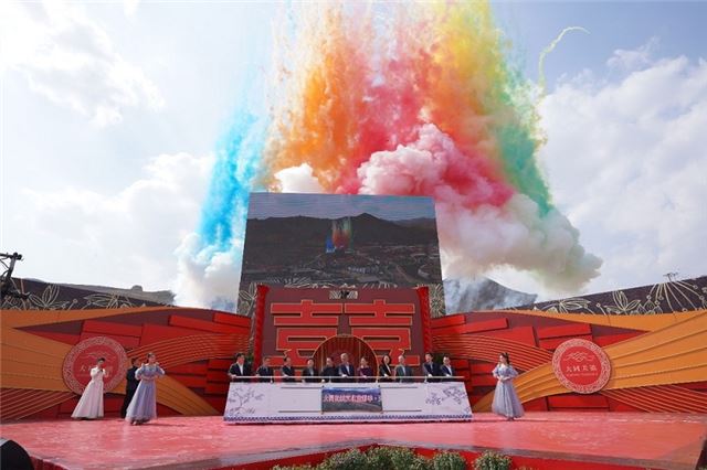 下午14时30分,艾凌宇等11位领导共同推动手柄,印有大同长城文化旅游季·天镇李二口长城文化节的卷轴缓缓展开,用最给力的祝福和支持启动此次活动。