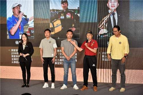 左起爱卡汽车总裁助理兼互动运营事业部总经理/爱卡焕行副总经理刘蕊、2021达喀尔拉力赛新人奖获得者张国宇、职业车手、改装大师韩魏、国家级汽车裁判杨宝慈、资深旅行探险家、制片人、导演谷岳共同为2021爱卡戈壁天堂助威