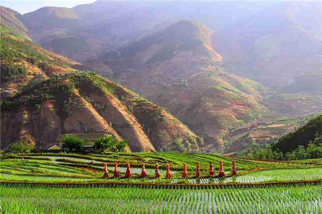 “一山分四季,十里不同天”,夏季来到这里,凉风徐徐,水面如镜,成片的绿色稻田映衬着远处红色的旱地,色彩鲜明,分外好看,正是米易梯田清凉度假拍照打卡的最佳时候。