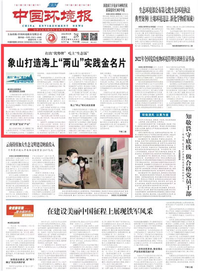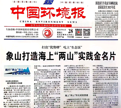 今天,笔者在中华环保联合会华东办事处副主任邵兴威办公桌上看到9月28日《中国环境报》头版头条推广浙江宁波象山县生态环境,读后甚感欣慰。