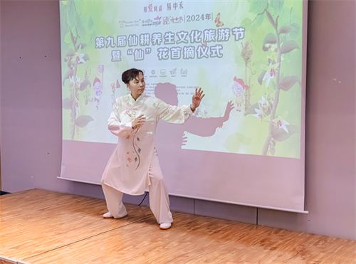 启动仪式上,壮族水袖舞、父亲节诗朗诵、乾坤太极等丰富多彩的健康艺术节目特色呈现,伴随着“仙气”铁皮石斛鲜花缓缓打开,代表着第九届仙耕养生文化旅游节正式启动。