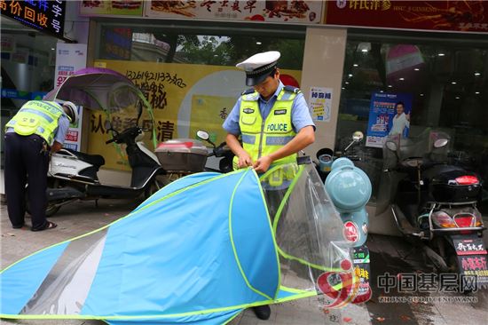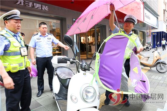 中国基层网玉山5月24日消息(通讯员 方菲菲)入夏以来,电动车非法安装遮阳伞现象极为突出,存在较大安全隐患,为有效遏制电动车加装遮阳伞上路引发的道路交通事故,营造文明和谐、安全有序的道路交通环境,5月23日,玉山县公安局交警大队在辖区开展非法安装遮阳伞专项整治行动。
