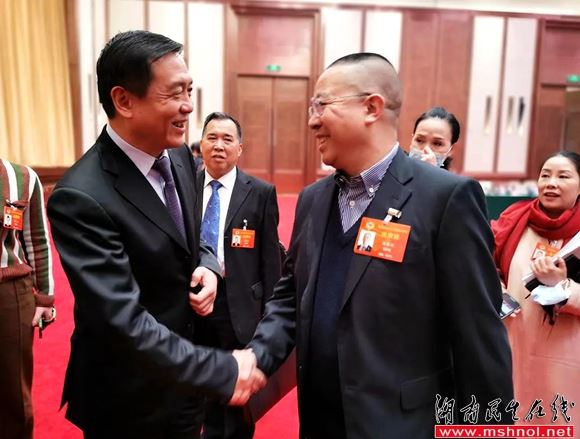 ▲胡国安委员(右)与中共湖南省委常委、宣传部部长张宏森