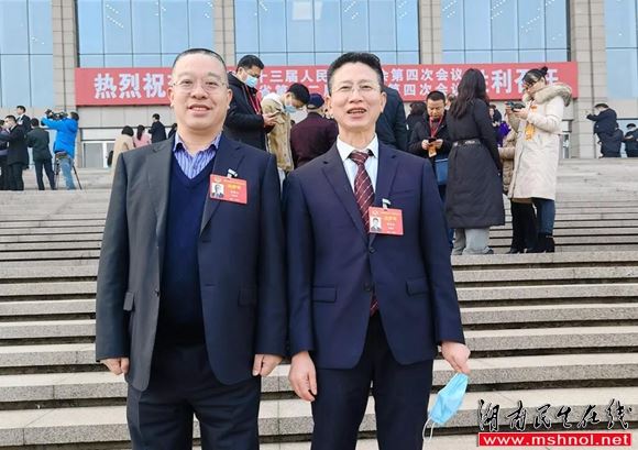 ▲胡国安委员(右)与湖南省政协副主席胡旭晟