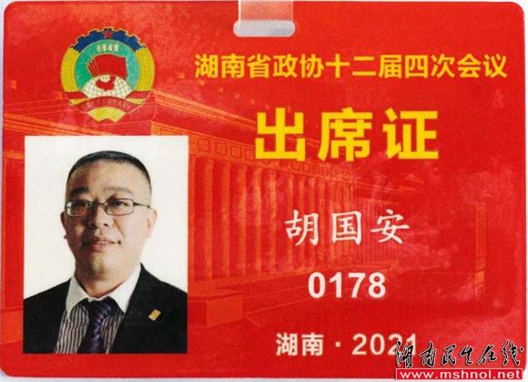 ▲湖南省政协委员、绿之韵集团董事长胡国安(右二)出席会议
