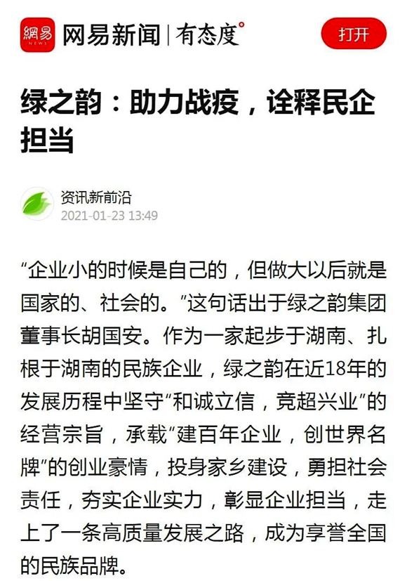 会议结束后,胡国安委员表示:2021年,我们身处的世界,大变局大变革加速演变,形势依然复杂严峻;我们所处的历史节点,正逢“十四五”开局、现代化新征程开启,也将迎来中国共产党百年华诞。摆在我们面前的使命更光荣、任务更艰巨、挑战更严峻。作为一名省政协委员,他将发挥自身所长,以百姓之心为心,集智聚力,发出更多湖南好声音,向党和人民交出新的履职答卷。2021年,不仅是“十四五”开局之年,也是绿之韵“第四个五年规划”落地推进的第三年。作为一家立足湖南本土的民营企业,绿之韵将认真贯彻落实今年湖南“两会”精神指示,准确把握所处发展阶段,奋力担当历史使命,积极承担企业公民责任,助力湖南“三高四新”战略高水平、高标准、高效率实施。在企业发展战略上,充分发挥出大健康全产业链优势,稳住向上向好发展态势,全领域、全方位、全过程贯彻高质量的发展要求,深入推进“大品牌+大健康+大金融”的发展战略,坚持以研发生产经过市场检验的、具有核心竞争力的“拳头”产品为方向,加强与高等院校、科研机构的产学研深度合作,增强企业软硬件体系建设,全面布局大健康领域,大力发扬“为民服务孺子牛、创新发展拓荒牛、艰苦奋斗老黄牛”的“三牛精神”,凝聚起“九牛爬坡,个个出力”的奋斗合力,助推我省中医药、大健康产业高质量发展,以优异成绩迎接建党100周年。