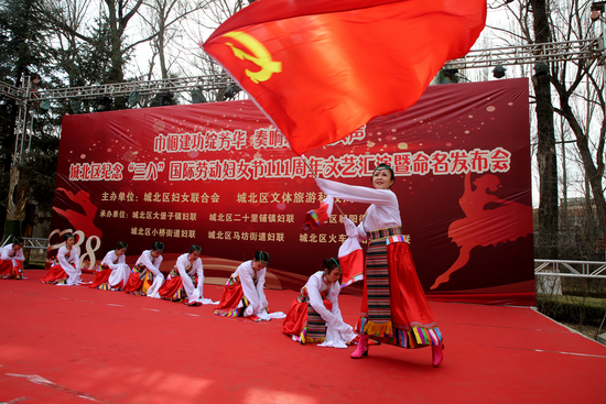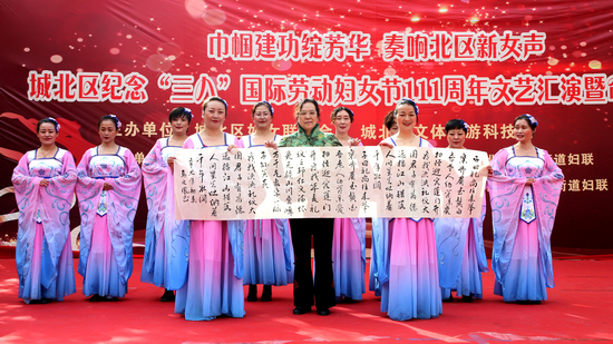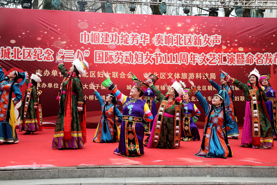 活动为来宾们呈上了一场精彩的文艺演出,舞台上各镇街道妇联选送的一个个精彩纷呈的节目,吸引了全场观众的眼球,不时响起热烈的掌声。《华夏礼仪》、《藏家儿女心向党》、《爱我中华》等每个节目主题鲜明、内容丰富、观赏性强、具有鲜明的民族特色,为整个活动现场营造了浓厚的节日氛围,充分彰显了北区新时代女性奋发有为、拼搏进取的靓丽风采和巾帼不让须眉的优秀品质。