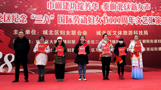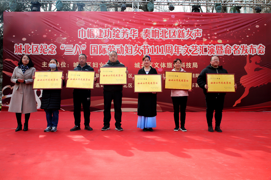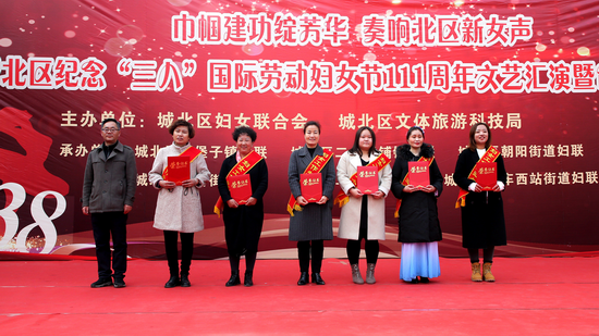阳春三月,万物复苏,到处洋溢着浓浓的春意。为纪念第111个“三·八”国际劳动妇女节,让全区妇女过一个健康、和谐、快乐、温馨、难忘而有意义的节日,3月5日,区妇联联合区文体旅游科技局在朝阳公园大舞台举办以“巾帼建功绽芳华 奏响北区新女声”为主题的庆“三八”妇女节文艺汇演暨命名发布会,拉开了北区庆“三八”系列活动的序幕。区统战部副部长、工商联副主席姚序、区司法局局长郝秀林、区残联理事长付海生、区文体旅游科技局副局长甘富鑫、区群团服务站站长袁彩云以及来自各镇(街道)妇联、区直机关各妇委会的妇女干部及群众200余人参加。区妇联主席李青红发表了热情洋溢的致辞。
