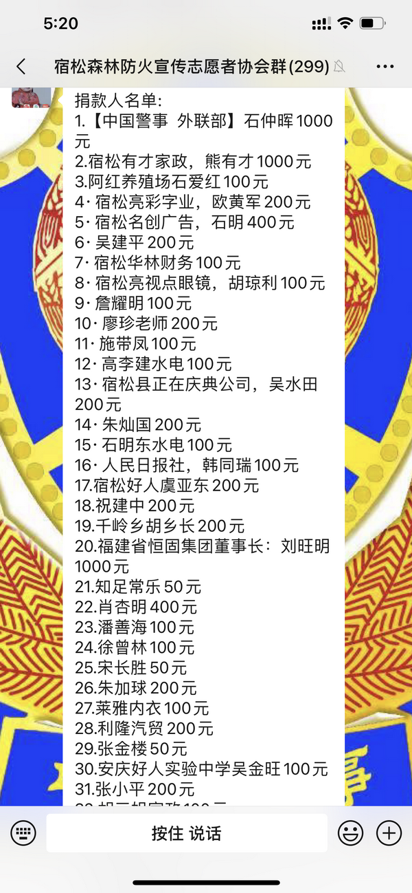 安徽宿松讯(文/图 徐曾林 责编 韩同瑞)近日,一名身处山区的叫熊娟的森林防火宣传志愿者,发出一封求助信,引发大家的关注。宿松县森林防火志愿者协会会长石仲晖及会员随即积极响应,短短三天时间大家纷纷慷慨解囊,以发红包专人负责接收的方式,捐得7750元善款。