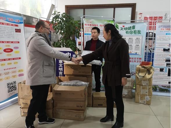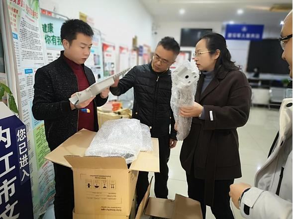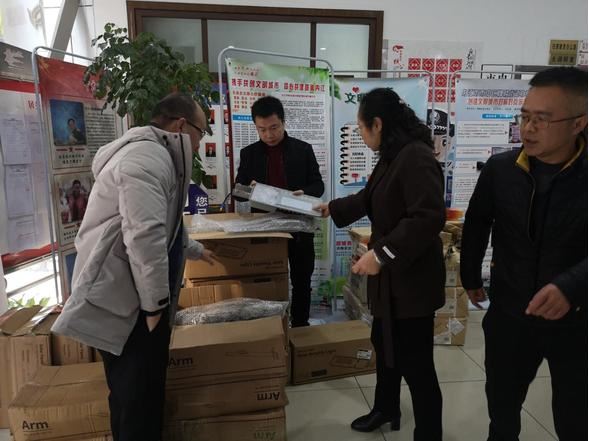 代表们在清点太阳能路灯