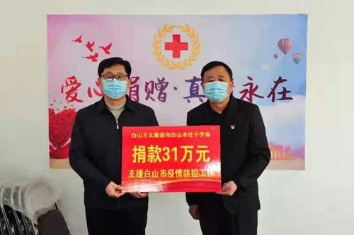 为认真贯彻落实好省委、市委会议精神和各项安排部署,打好打赢疫情防控阻击战,白山方大集团党委第一时间组织党员、团员、青年骨干开展援助抗疫工作捐款行动,白山方大集团及全体员工共计向白山市红十字会捐款31万元,组织茅台、五粮液专卖店向吉林省慈善总会捐款14.37万元,竭尽全力支援吉林省、白山市开展疫情防控工作。
