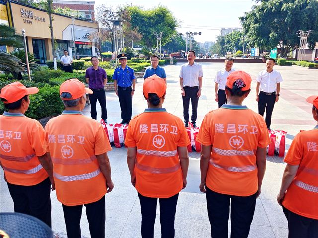 8月10日上午,隆昌市委书记林双全带队,深入一线看望慰问城市环卫工人、管护工人、城管队员。
