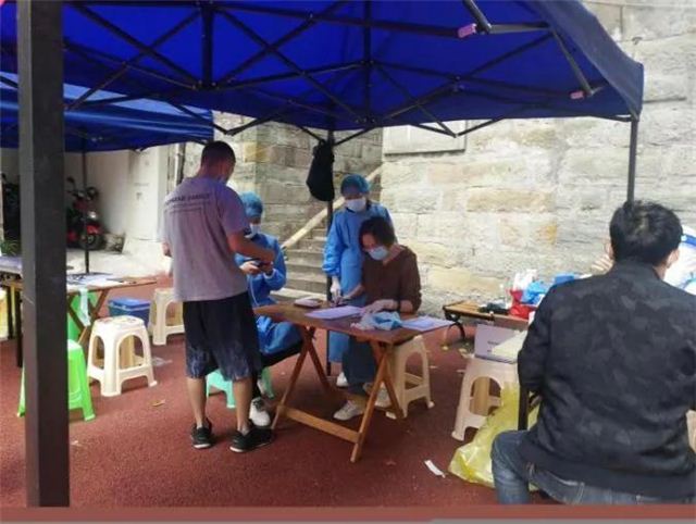 9月11日,位于高桥街道松三社区公租房小区的核酸采集点现场,志愿者们用小喇叭喊着:“戴好口罩,间隔一米,调出健康码。”群众们听指挥、分批次,有秩序的进行核酸检测。按照社区疫情防控工作统一调度,区就业社保中心党员、干部职工作为志愿者,积极配合做好核酸检测现场秩序维护,引导群众有序扫码测温、配合社区做好人员摸排等工作,同社区工作者共筑联防联控“红色堡垒”。