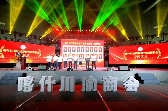 在大家的见证之下,会上为喀什川渝商会第六届理事会员进行了授牌,台下掌声不断,共同见证着川渝商会发展的荣耀时刻。庆典活动以《扎根边疆不忘初心》、《精神传承斗志昂扬》、《展望未来砥砺前行》三个篇章的节目演出拉开了序幕,中国著名歌手陈星、王淇;巴蜀笑星王宝器、新疆著名艺人王洋的助演,把庆典活动推向了一个又一个高潮。