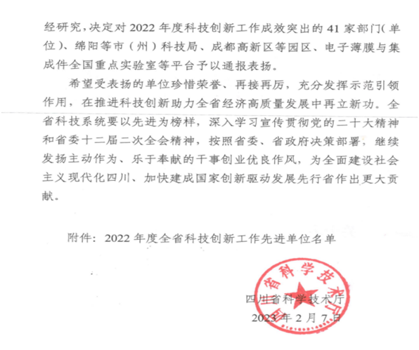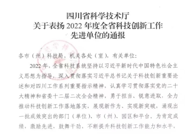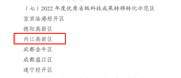 日前,四川省科学技术厅印发《关于表扬2022年度全省科技创新工作先进单位的通报》,内江高新区荣获2022年度优秀省级科技成果转移转化示范区。名单如下: