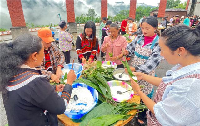 在端午节来临之际,为增强村民之间的情感交流,营造和谐的节日氛围。6月7日,清平彝族乡民族村村民委员会与G4216线沿江高速宜金段XJ5项目部联合,在民族村彝族家新寨火把广场组织开展“粽叶飘香迎端午,民族团结一家亲”系列活动,邀请群众一起包粽子、送祝福,庆端午。
