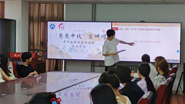 “奕奕中纹”宣讲团精心策划了一场视听盛宴。以“中华文明突出特性的绘画表达”为主题,宣讲团成员结合高质量的视觉材料,展示了与主题相关的艺术作品,提升了宣讲的艺术性与感染力。此次活动不仅呈现了精美的PPT和高清的视频资料,还通过多元化的视觉体验增强了信息的传递效果,使得宣讲既具观赏性又富有深度。