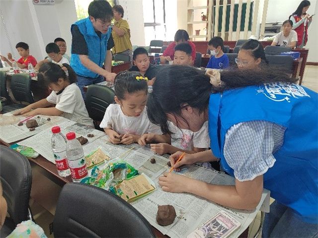 宣讲团将传统艺术与现代科技相结合,丰富宣讲形式,带领徐州市云龙区庆丰社区孩子们制作瓦猫泥塑和简单的火箭卫星模型,搭建微型场景,挖掘孩子们的创造力,在手工实践中,激发对科学的热爱。