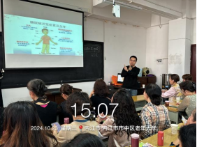 为落实国家基本公共服务项目,加强基层卫生知识普及和宣传工作,提高广大群众对项目的知晓率,降低传染病及慢性疾病的发生。10月23日,内江市市中区城东卫生服务中心在市中区老年大学开展了“传染病及慢性病防控知识”健康讲座。同时,邀请区疾控慢病股工作人员参加。