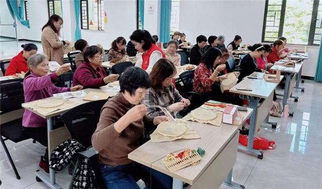 刺绣班内,老年学员围坐在一起,手中的针线在布料上穿梭,专注的神情仿佛在诉说着对传统技艺的热爱。在老师的耐心指导下,老年学员一针一线地绣出精美的图案,不仅锻炼了手眼协调能力,更在创作中找到了内心的宁静与满足。