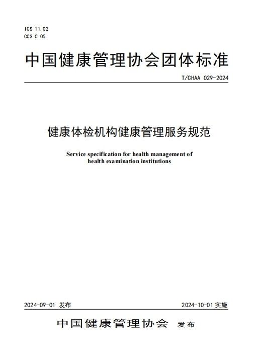 10月1日,我国第一部全国性健康管理团体标准——《健康体检机构健康管理服务规范》(T/CHAA029-2024,以下简称《健康管理服务规范》)正式实施。