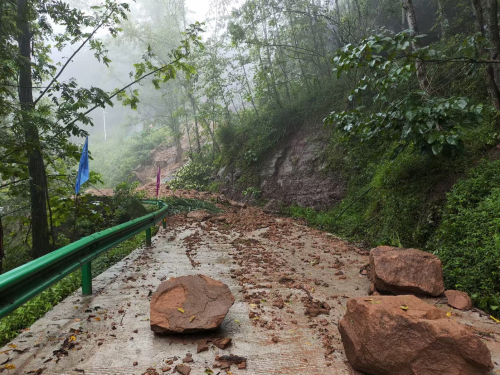 图为暴雨冲毁路面的实况图 陈周晨轲供图