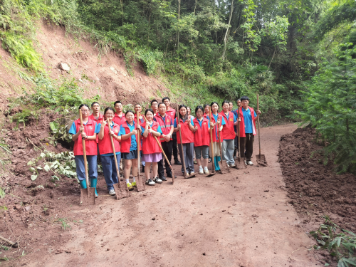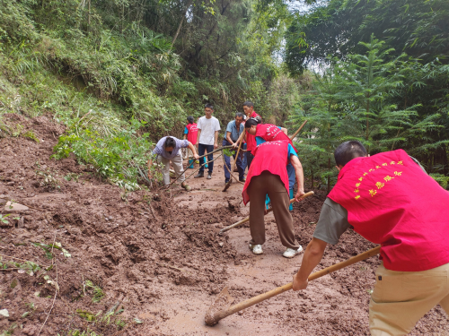 为通过实际行动深化农村地区的环保意识,提升乡村环境质量。当地村委会和重庆人文科技学院“乡韵绒花,共谋振兴”实践团共同发起了一场保护环境的志愿活动,吸引了众多志愿者的积极参与。活动的开展,源于对当前乡村地区环境问题的关注。 下午,三下乡队伍到达丰都县董家镇石龙门村,在经过特大暴雨的冲刷下,石龙门村道路遭遇泥石堵塞,给村民出行带来不便与安全隐患。厚重的泥土堵塞了村民们下山的道路,尤其是在暑假更阻挡了留守村民与家人团聚的道路,给当地村民带来了不便。