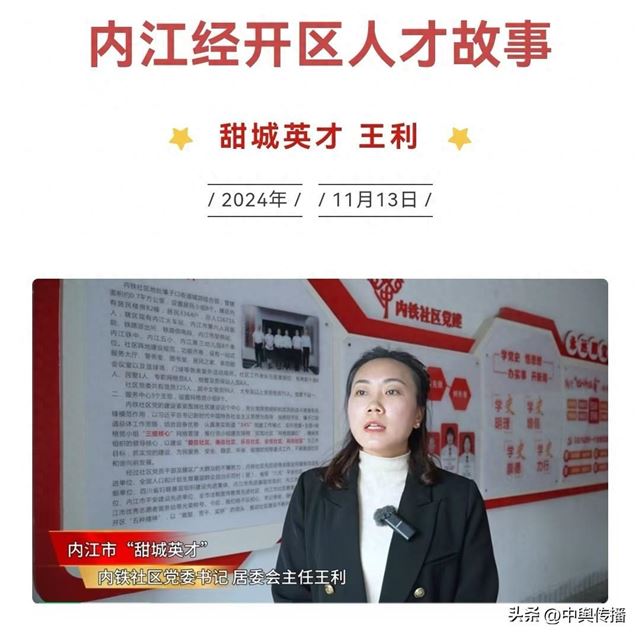 今天,推出内江经开区人才故事第二期:内江市“甜城英才”,内江经开区壕子口街道内铁社区党委书记、居委会主任 王利