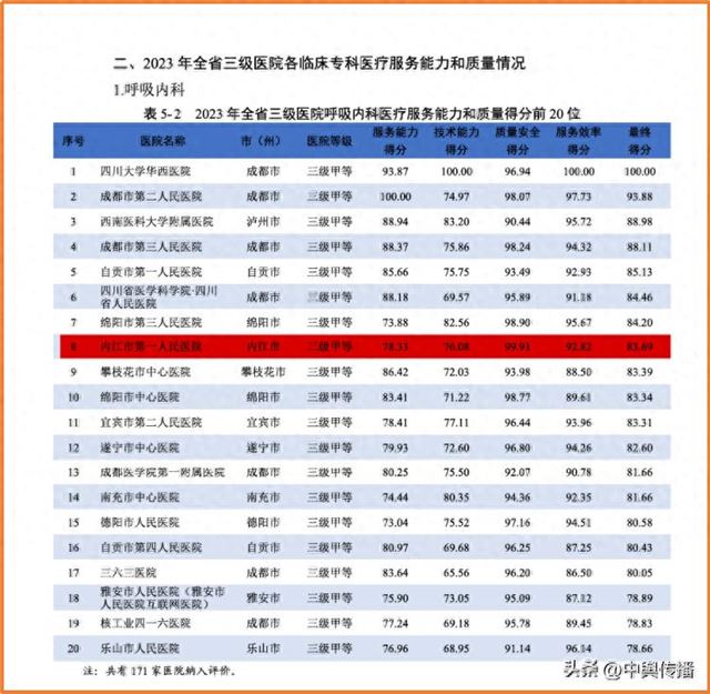 内江市第一人民医院呼吸与危重症医学科、胸外科、眼科榜上有名