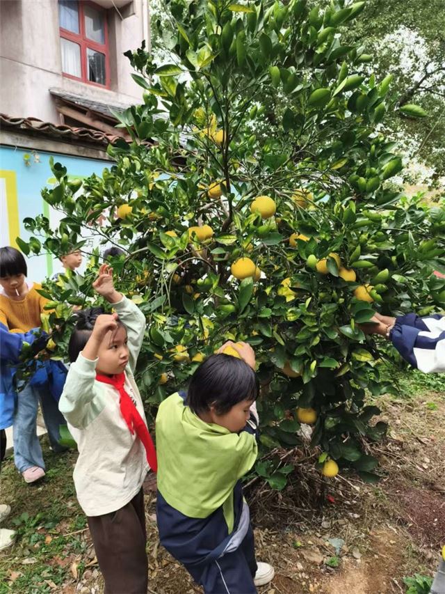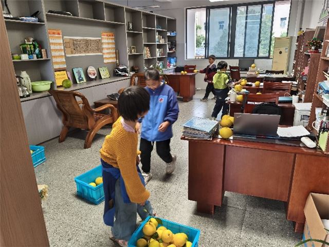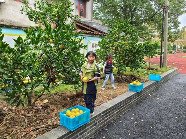 这不仅仅是胡柚果还是学校的文明果。每年全校师生都会共同分享美味的胡柚,共享这份独有的甜蜜。