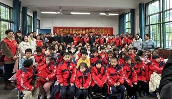 2024 年 11 月 25 日,衡东县草市镇焕塘完小迎来了一场意义非凡的爱心活动——向日葵志愿者协会校服捐赠仪式。当日,校园内洋溢着温暖与感动,草市镇镇长尹路、向日葵志愿者协会会长吴满元、校长陈志雄等领导与嘉宾出席了此次活动。