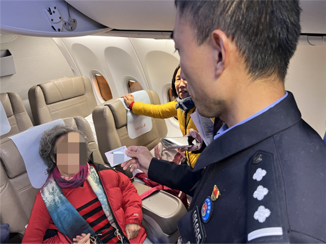 执勤队接报后迅速启动救助预案,开启“绿色通道”,主动与航空公司工作人员和机场急救部门对接,紧密关注航班动态,安排骨干民警提前赶赴廊桥位置负责处置。