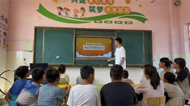 团队共前往两处童心港湾,分别是太窝村童心港湾和洋江村童心港湾。童心港湾是关爱留守儿童公益项目,里面的儿童大部分都是留守儿童,父母长期在外打工,缺少关爱,团队希望能为他们带去温暖和关怀。我们教孩子们唱歌,折纸以及陪他们做游戏,给他们科普安全知识,他们都很活泼爱笑,反应力也比一般的孩子更快,童心港湾的存在功不可没。虽然相处的时间不长,但是孩子们纯朴天真的笑容让我们深深的感受到,我们的志愿服务是有意义的。