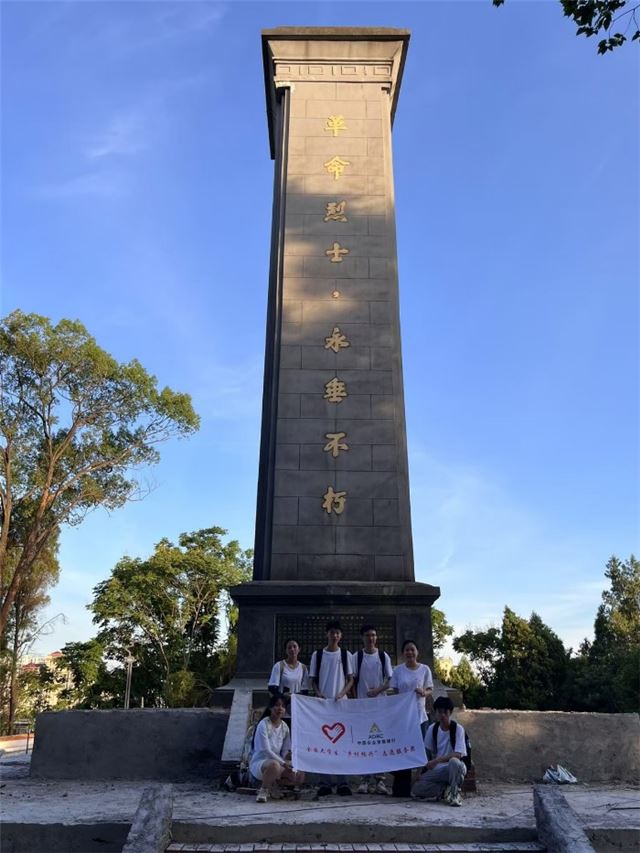 赣南是红色的土地,是最早燃起星星之火的地方。团队前往南康区旭山岭的革命烈士陵园,参观南康革命烈士纪念碑,陈赞贤纪念馆和陈赞贤烈士墓,缅怀革命先烈,领略革命文化。碑基座上刻着816位英烈的姓名,他们英勇无畏,热爱祖国,为革命抛头颅,洒热血。革命先烈,永垂不朽!在陈赞贤纪念馆,了解革命先烈的事迹,正如纪念馆上的对联“鞠躬尽瘁千秋仰,取义成仁万载传”,陈赞贤烈士的爱国精神永远会被传承下去。(供稿人:“乡村振兴,寻梦南康”志愿服务队 杨志惠 赖海青 肖春燕 张雄 钟远茂 肖馨妍 许水珠 王嘉馨 朱杨星 高阳)