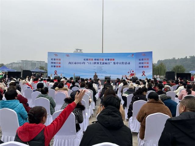 11月29日,在第37个“世界艾滋病日”来临之际,由内江市卫生健康工作领导小组、市卫健委、市疾控局共同主办的内江市2024年“12·1世界艾滋病日”集中宣传活动在大洲广场举行,通过文艺表演、科普展示、设立咨询台、发放宣传资料等多种形式,面对面向群众宣传普及艾滋病防治知识,营造全民广泛参与艾滋病防治工作的良好氛围。副市长张永参加活动。