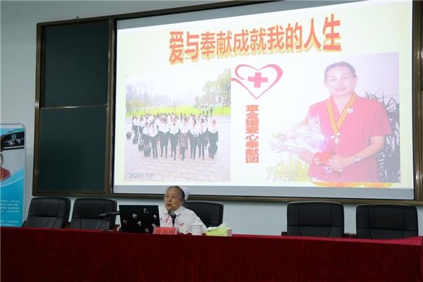 2024年11月28日,弘扬“南丁格尔”精神 章金媛教授事迹报告会在九江职业大学鹤问湖校区综合楼六楼报告厅举行,智慧健康学院师生代表、“微光如炬”志愿服务队成员等400人参加,报告会由校党委委员、副校长朱慧芳主持。