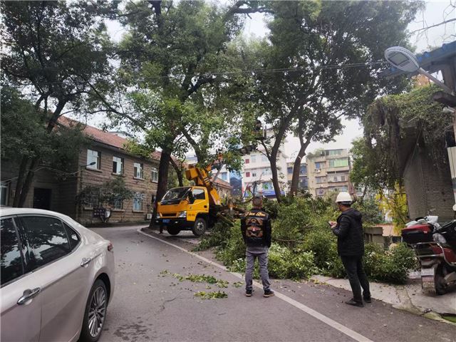 随后,在社区工作人员和施工队人员的共同努力下,砍伐行动有条不紊地进行。砍伐完成后,施工队及时对现场进行了清理,社区工作人员同时对周边居民再次进行了安全宣传,提醒他们持续关注周边环境变化,确保个人安全。