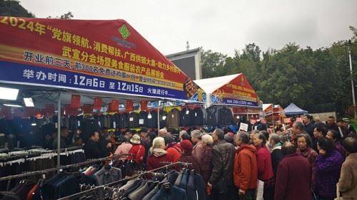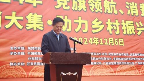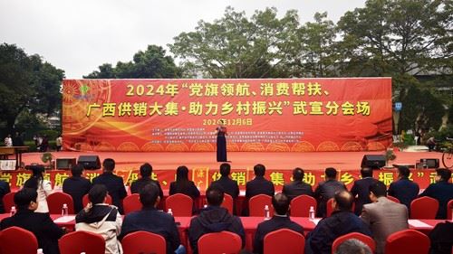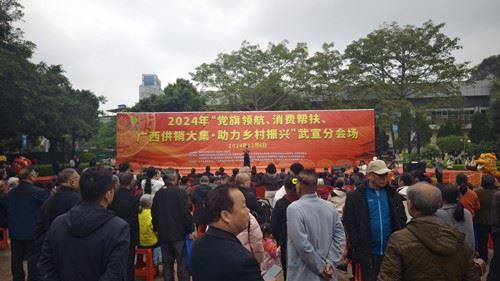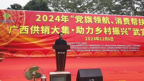 12 月 6 日上午9时,2024年“党旗领航、消费帮扶、广西供销大集.助力乡村振兴”武宣分会场暨美食服装农产品展销会活动启动仪式,在武宣县马鞍山公园盛大举行。