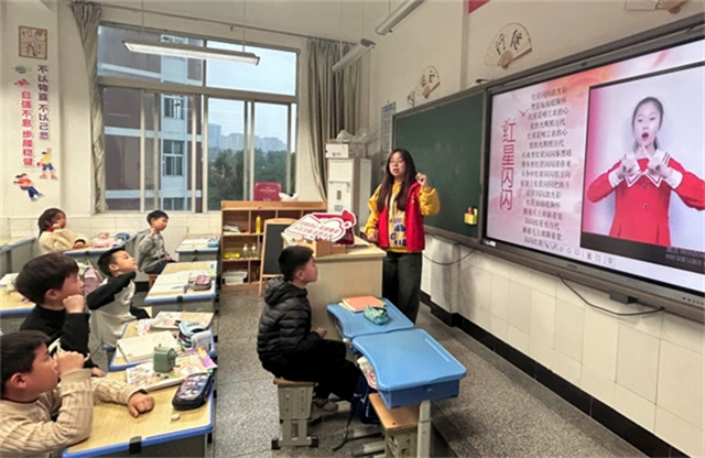 “这种手势舞蹈结合红色歌曲的形式富有创意和感染力,激发了小学生们的学习兴趣,也让单调的红歌学唱变得有趣新颖,更帮助了小学生们接受并铭记红色文化,有助于传承和发扬红色精神。”宣讲团队长吴淑珍讲道。