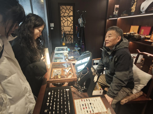 随后,团队一行来到了国家级手工艺类非遗金银细工传承人杨子江的工作室。杨子江是一位技艺高超的匠人,用双手雕刻着金银细工技艺的历史与未来。他详细介绍了金银细工技艺的历史渊源和独特魅力,同时也表达了对当前市场环境的深深忧虑。在这个快节奏的时代,大众对金银细工的了解程度有限,加之互联网时代下对手工艺品关