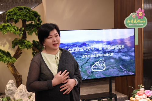 活动开场,主持人许一纯以其极具感染力的开场致辞,并清晰介绍活动流程,瞬间点燃了现场的热情,嘉宾们目光专注,不时交流着对活动的期待,现场氛围轻松活跃。 主题内容分享环节,如意花姐黄瑞育女士带来“如意花姐土鸡蛋——献给所有人的一颗真正来自深山的散养土鸡蛋”主题演讲。她详细介绍了土鸡蛋的独特之处,首先着重讲述其优良的养殖环境。陵阳古镇,坐落于全国首个生态经济示范区“青阳县”,此地生态环境得天独厚,气候温润宜人,自然景观美不胜收,且因禁止工业发展,水质达标率高达 100%。农场选址于此,这里山峦起伏、青山环绕、光照充足,拥有一片位于北纬 30 度的红土地,土壤富含硒元素。青阳地处长江中下游的国家生态示范区,四季分明,全年无霜期 220 天,为动植物的繁衍生长提供了绝佳条件,平均降水量 1526mm,森林覆盖率更是达到 57.5%。这般优质的环境孕育出的花姐土鸡蛋,品质自然出众。台下嘉宾们听得入神,她们有的身体前倾,目不转睛,有的频频点头表示赞赏。互动环节中,嘉宾们积极提问发言,探讨土鸡蛋市场前景与品质把控等话题,现场气氛高涨,掌声、讨论声交织回荡。 分享结束后,嘉宾们一同合影留念,定格这一精彩瞬间,大家脸上都洋溢着收获满满的喜悦。