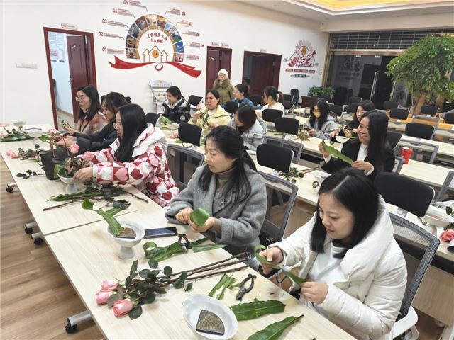 12月19日晚,内江经开区总工会2024年最后一期职工公益兴趣班在内江经开区工会驿站举行,来自全区各企事业单位的20名职工在花艺老师的指导下,学习插花技巧,陶冶生活情操,享受艺术之美。
