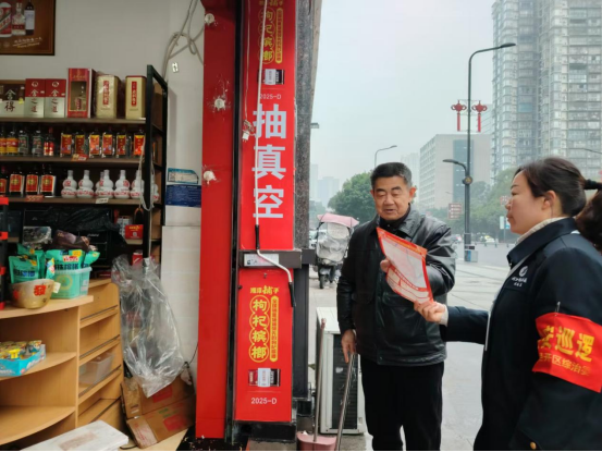 为有效预防各类火灾事故的发生,减少环境污染,保障人民群众的生命财产安全,2024年12月23日,内江经开区松林社区网格员在辖区开展烟花爆竹禁燃禁放宣传活动。