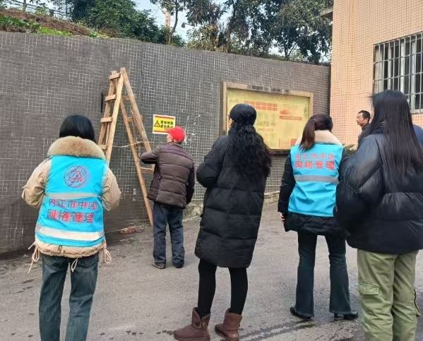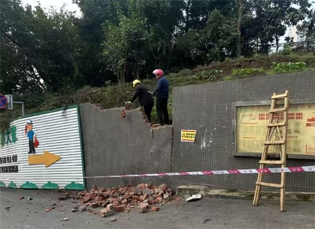 玉溪街道脚盆田社区网格服务站为确保居民生命财产安全,决定对此进行维修处理。待上级部门组织专业人员对围墙进行现场评估并制定维修方案后,相关工作有序开展。在施工过程中,网格员提前设置安全警示标志,拉好安全警戒线,确保施工现场安全有序。在网格员的积极配合下,维修工作很快得以圆满完成。