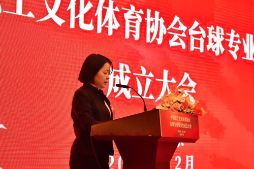 中国职工文化体育协会秘书长李宏宣读《关于同意成立中国职工文化体育协会台球专业委员会的批复》。经大会表决,产生台球专业委员会领导成员,中央广播电视总台体育青少频道主持人姜毅担任台球专业委员会会长,何旺为常务副会长,高勤银、甘连童、梁金雄、刘铮、刘远达、帅飞宇、刘建宏、于源、汤波、王明川为副会长,龙佳妮为秘书长,丛浩、周佳妮、周秋玲、刘俊喜、刘健、徐荣根、赵文龙、李奕霏、董洁、董茜为副秘书长。