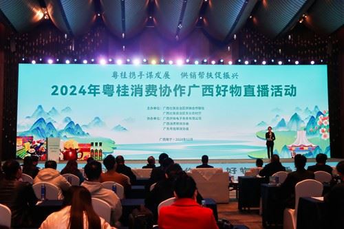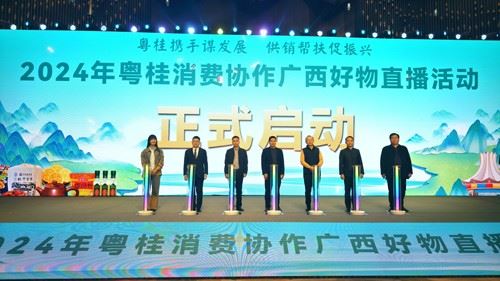 12月23日,由广西壮族自治区供销合作联社、农业农村厅主办,广西供销电子商务有限公司、广西消费帮扶协会、广东粤桂帮扶协会协办的“2024年粤桂消费协作广西好物直播活动”在南宁正式启动。