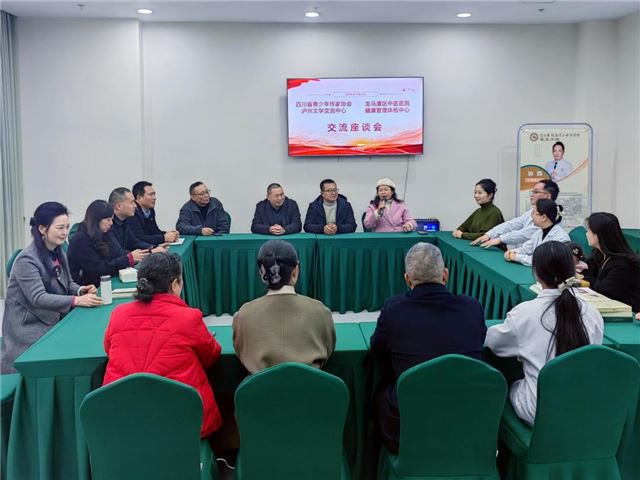 11月29日,四川省青少年作家协会泸州办事处(泸州文学交流中心)组织了一场文化与健康“双向奔赴”之旅主题采风活动。泸州市作协副主席涂拥(中国作协会员)、龙马潭区中医医院副院长祝焱、泸州市新联会副会长王昌海,办事处主任游明刚、执行主任周跃刚,以及在泸会员及特邀嘉宾20余人,走进泸州市龙马潭区中医医院,感受中医文化魅力。